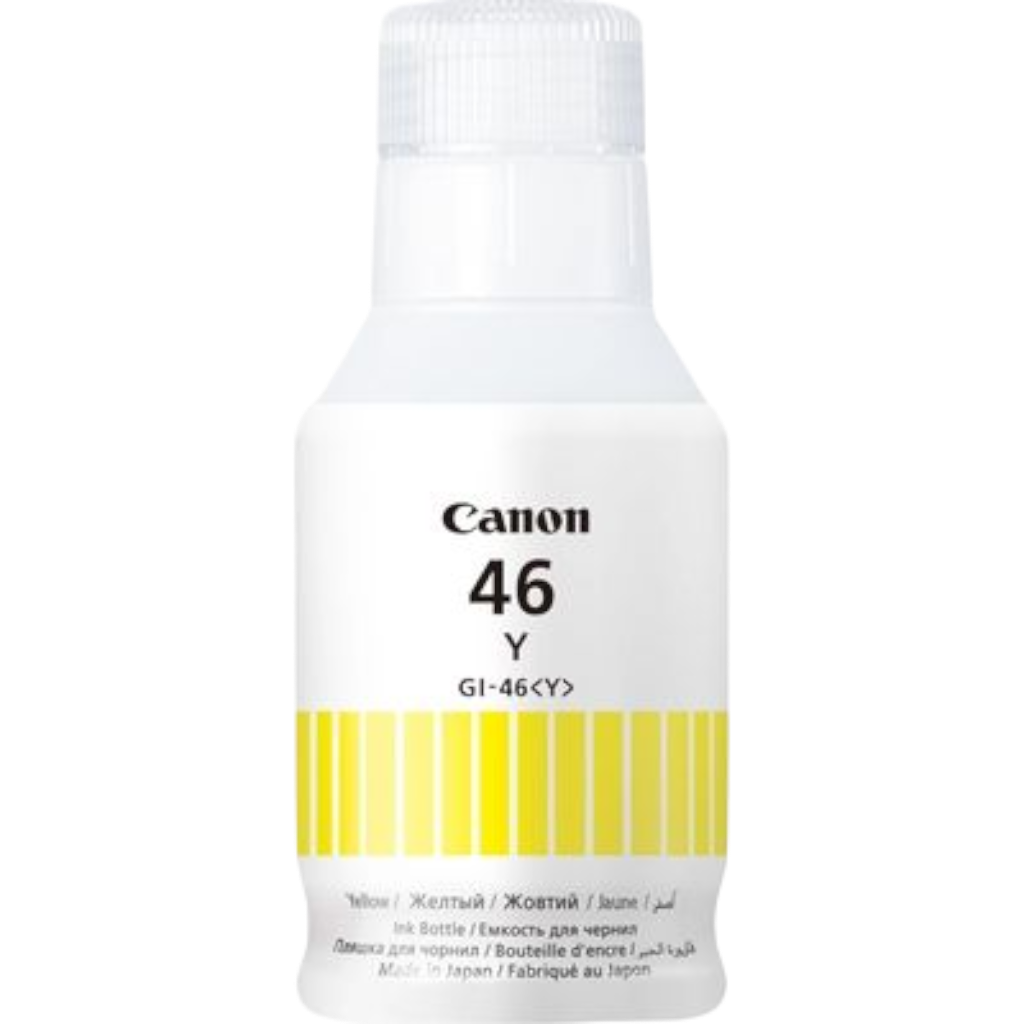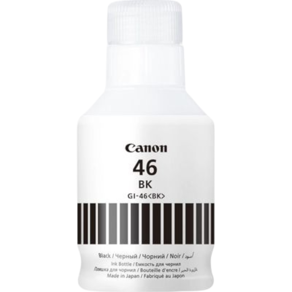 בקבוקי מילוי דיו מקוריים Canon מסדרת GI-46 מיועדים למדפסות MegaTank עם מיכלי דיו מובנים.