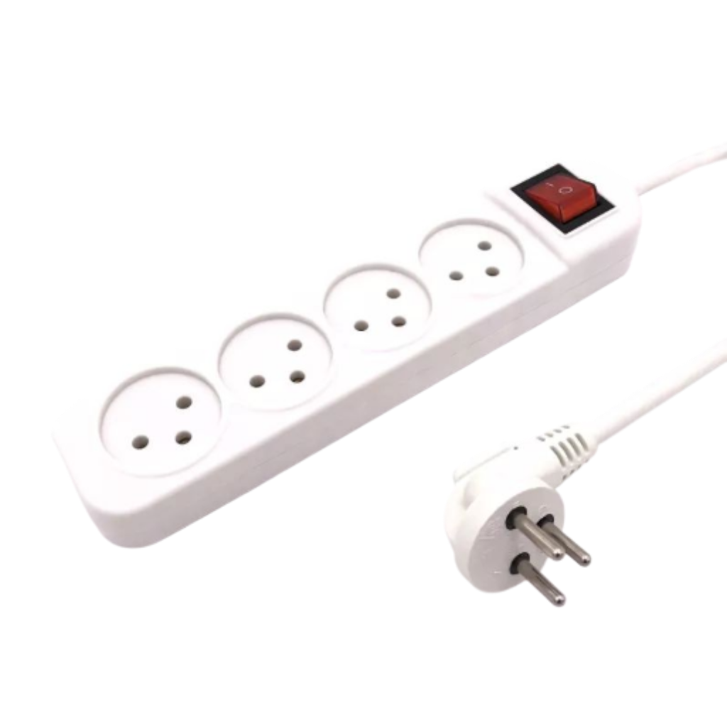 רב־שקע 4 שקעים עם מפסק מואר וכבל באורך 3 מטר – פתרון נוח ובטוח לעמדת עבודה, בית או משרד.
