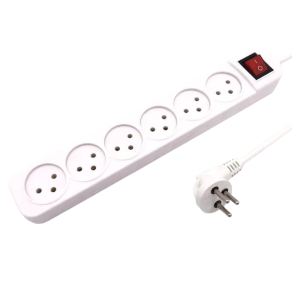 רב־שקע 6 שקעים עם מפסק מואר וכבל באורך 3 מטר – נוח, בטיחותי ומאפשר גישה נוחה למכשירים מרוחקים יותר.