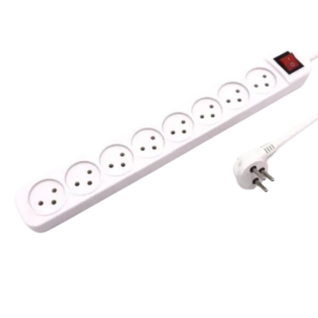 רב־שקע 8 שקעים עם מפסק מואר וכבל באורך 3 מטר – מאפשר חיבור נוח ובטוח של מכשירים רבים במשרד, בחדר עבודה או בבית.