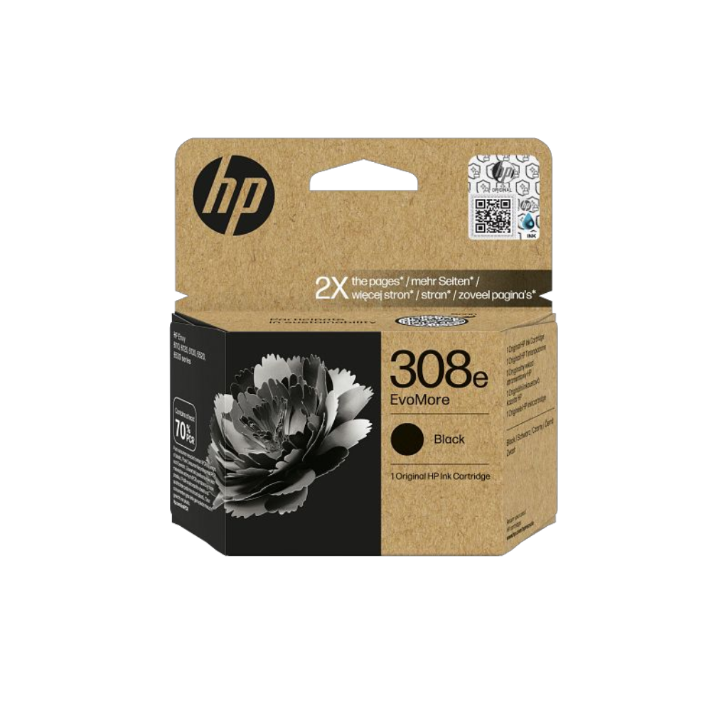 ראש דיו מקורי שחור בנפח מוגדל (XL) מסדרת HP 308e להדפסות מרובות, טקסט חד ועלות־לדף משופרת. מתאים לדגמי DeskJet החדשים לבית ולמשרד קטן.